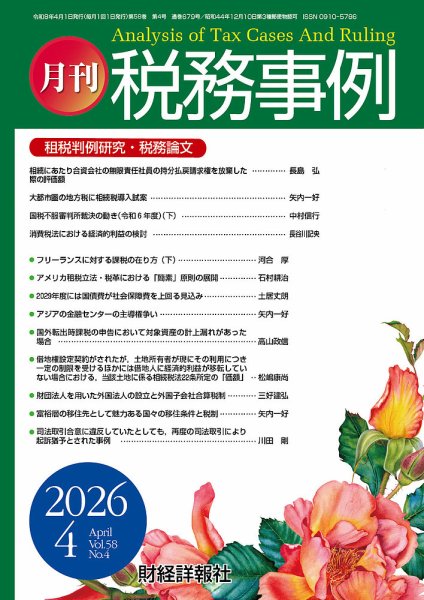 本誌は、税務に関する裁判例、裁決事例など、主として実務事例を豊富に取り上げ、詳細に分析・解説する専門誌として、昭和44年に創刊いたしました。